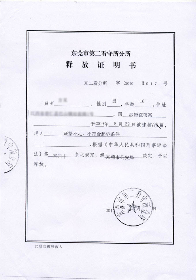 释放通知书